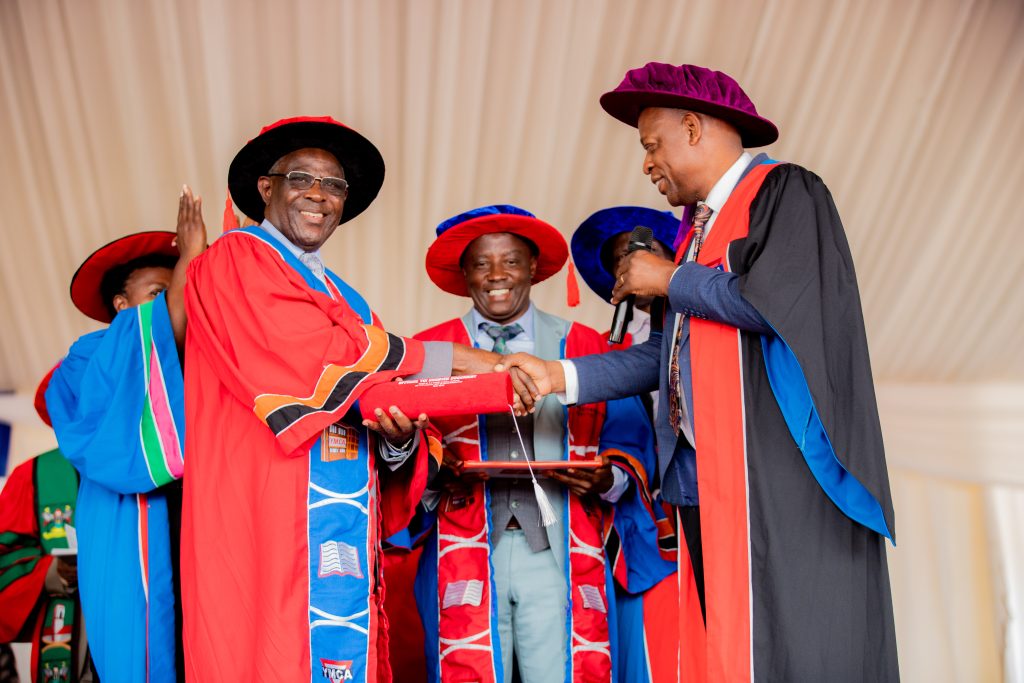 The ceremony was graced by the presence of esteemed guests, including Dr. Vincent Aloysius Ssembatya, Director of Quality Assurance and Accreditation at the National Council for Higher Education (NCHE), representing the Chief Guest, Prof. Mary J. N. Okwakol. Dr. Ssembatya officially presented the university charter to Dr. James Nkata, Chancellor of YCI, signifying a new chapter in the institution’s history.